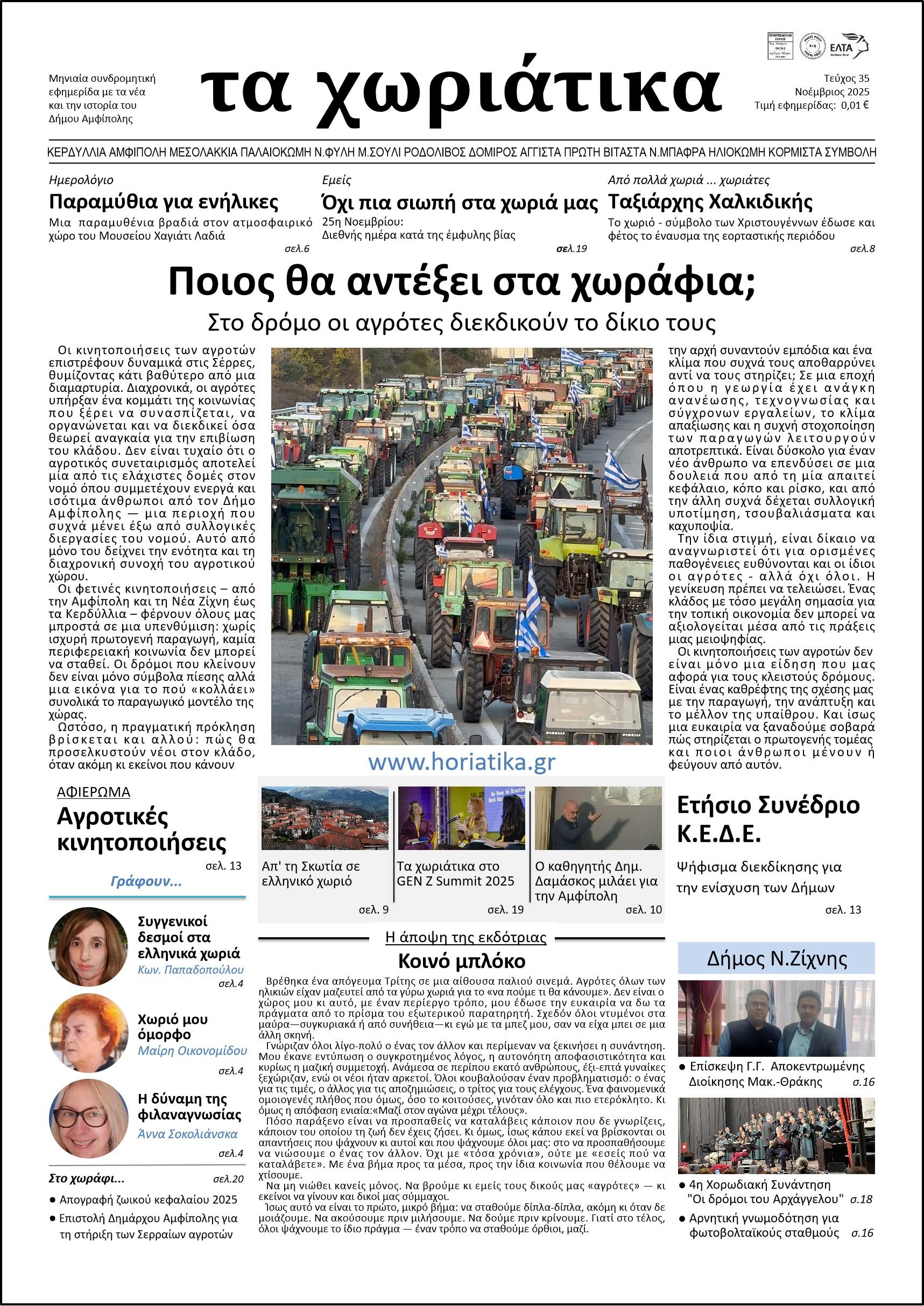 Το χωριό, ιδιαίτερα για όσους έχουμε μεγαλώσει σ’ αυτό τις τελευταίες δεκαετίες, είναι μια έντονη σχέση. Πάντα κάτι μας τραβάει σ’ αυτό και κάτι μας απωθεί. Όταν γεννήθηκε η ιδέα της εφημερίδας, ένα πράγμα σκεφτόμουν: «Πού πας να μπλέξεις, γιατί να ασχοληθείς με το χωριό;».